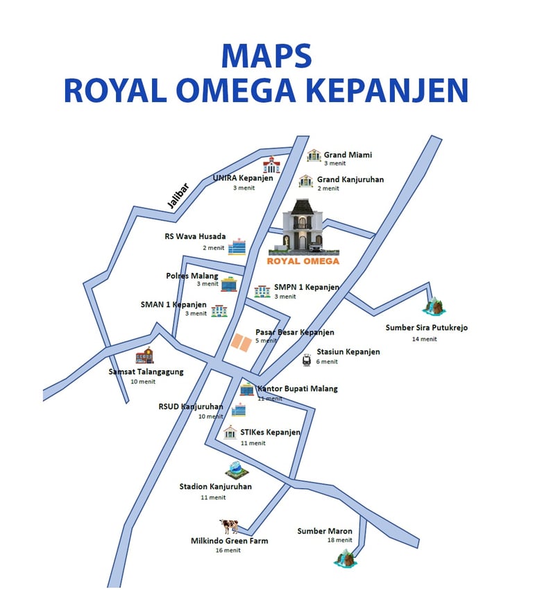 Royal Omega merupakan cluster hunian eksklusif bergaya American Classic pertama di Kota Kepanjen yang berlokasi strategis di tengah kota, dekat berbagai fasilitas .